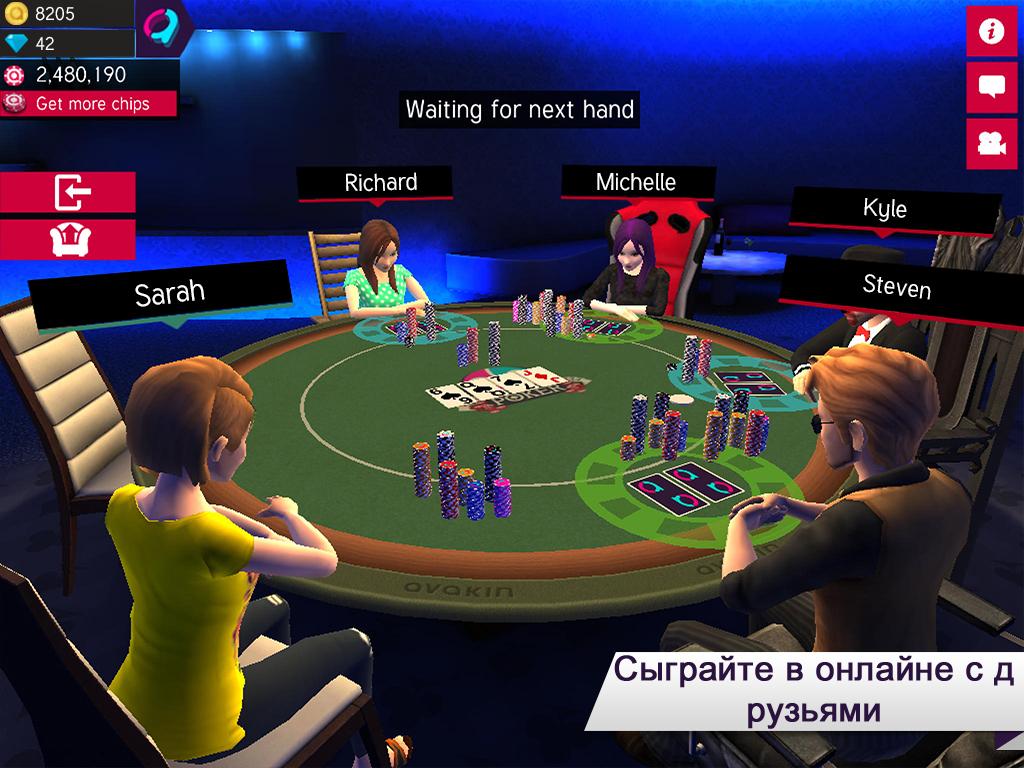 Возможность показывать свои эмоции через виртуального персонажа – настоящий прорыв в 3Д покере. Теперь игрок может демонстрировать противникам: злость, удивление, радость, смятение, задумчивость, равнодушие. И другие чувства в зависимости от ситуации. Это идеальное подспорье для любителей блефа. В самых современных приложениях предусмотрена даже возможность разбросать фишки по столу, демонстрируя гнев и раздражение. И другие подобные функции, делающие игру еще интересней и увлекательней.
