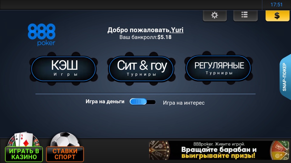 Тем, кто не хочет скачивать приложение на свое устройство, предусмотрена возможность играть в мобильном браузере на официальном сайте m 888Poker com, здесь в отличие от программы все на русском языке.
