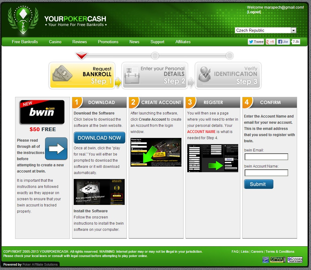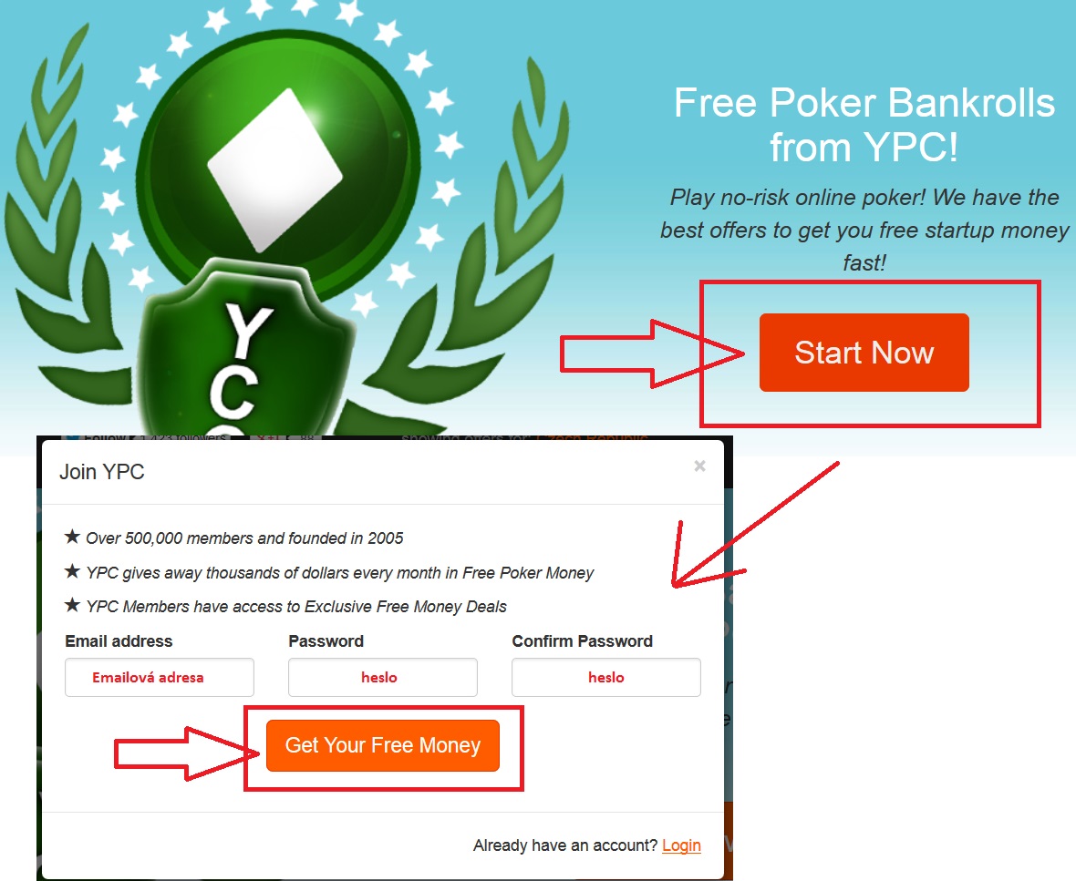 Для получения бездепозитного бонуса через YourPokerCash, игроку необходимо: