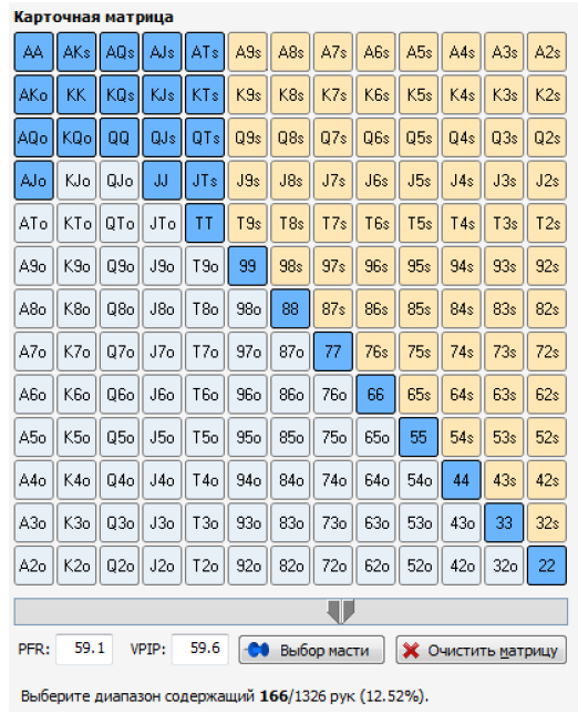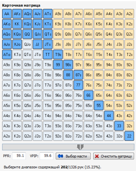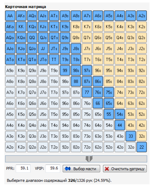 На поздней позиции процент разыгрываемых рук составляет 25%-30%.