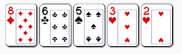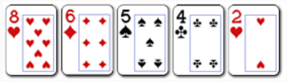 4.Восьмерка Лоу. Последнее сочетание, составляется из 5-и разнообразных карт, самая высокая из которых 8. Когда претендентов на победу несколько, верх берет сочетание, где 2-я карта по рангу ниже, чем у соперников.