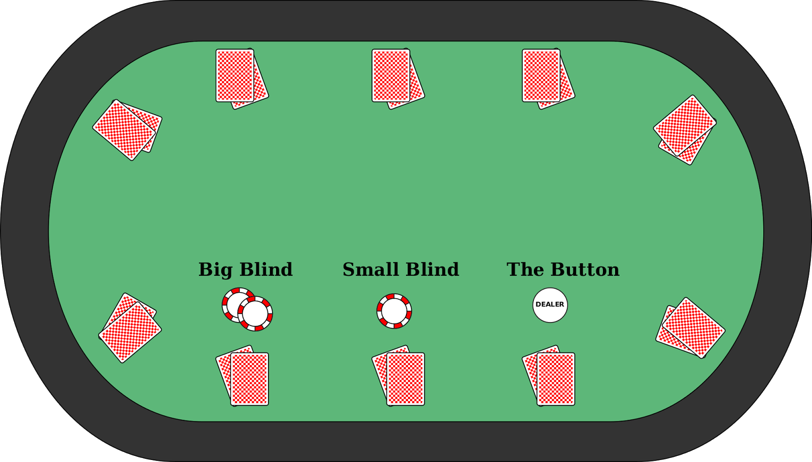 Также баттон определяет, кому из соревнующихся нужно делать обязательные ставки «вслепую». Участник слева от дилера делает малый блайнд, следующий большой блайнд. Сам дилер получает карты в последнюю очередь.