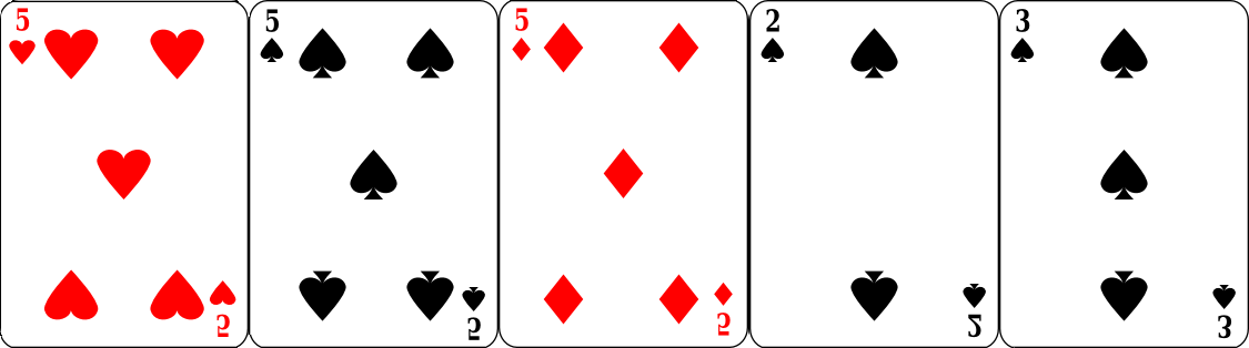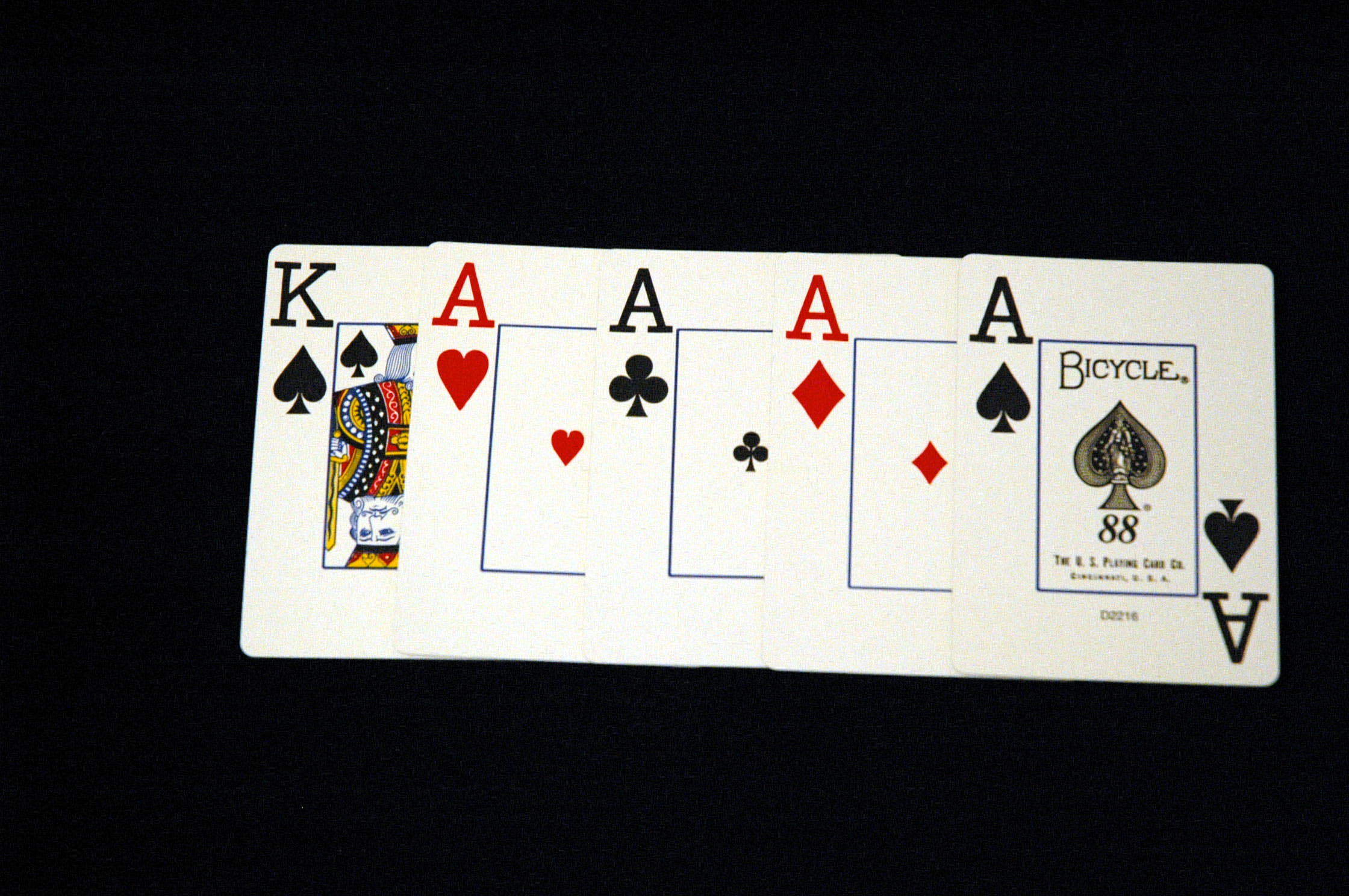 Состоит Каре из четырех карт одного достоинства, плюс пятая, которая является кикером и не участвует в комбинации. Пример сочетания: четыре вальта, четыре короля, четыре семерки и так далее. Самым старшим Каре будут четыре туза, а самым младшим четыре двойки.