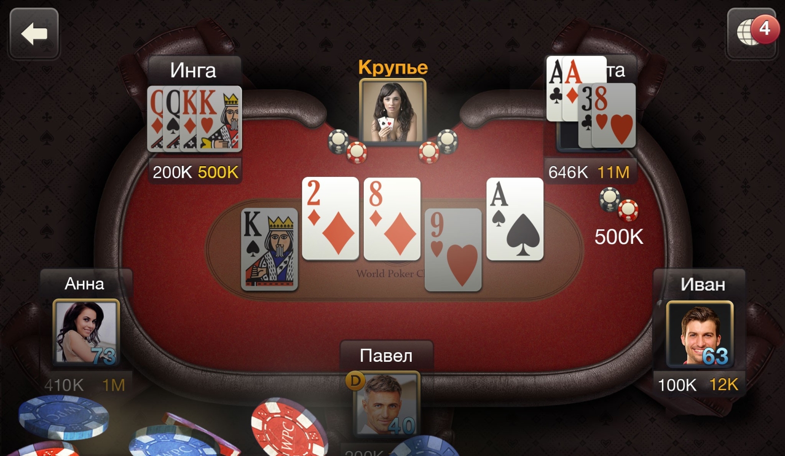 - Каждый игрок может уравнять или повысить ставку, либо выйти из игры.