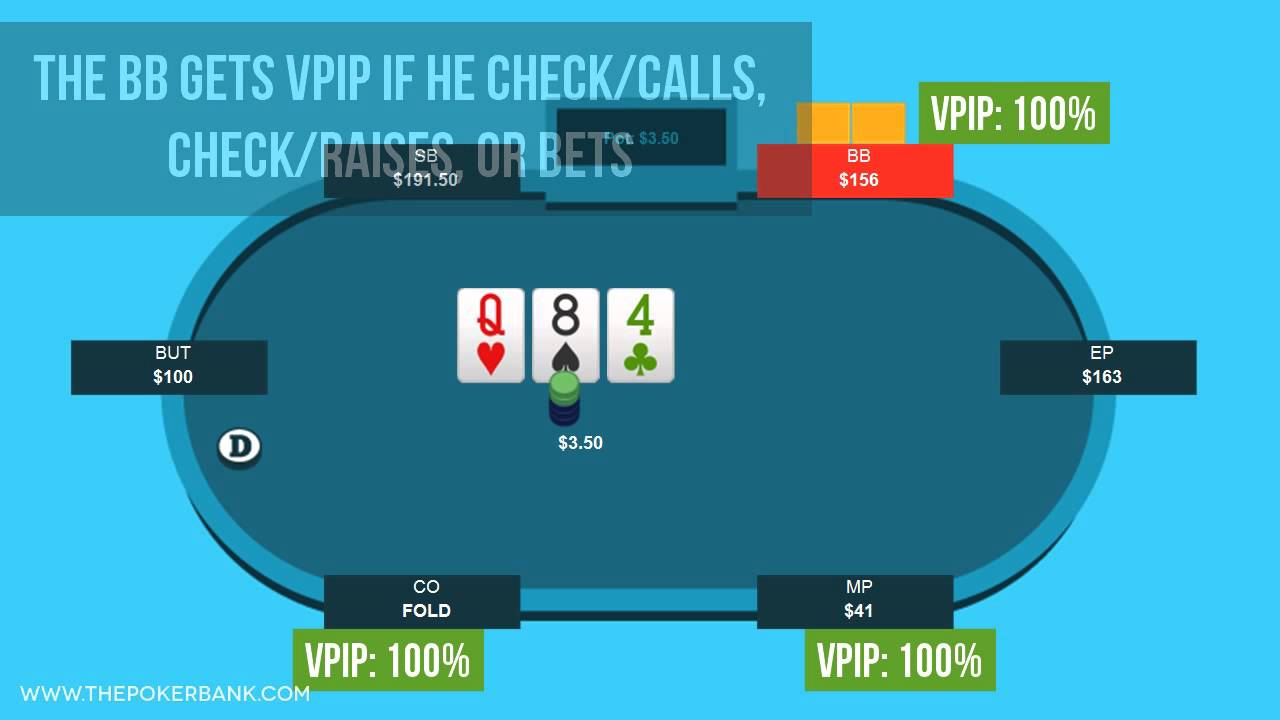 Значение VPIP высчитывается исходя из общего количества раундов, сыгранных противником, по отношению к числу заходов в игру. То есть, если он участвовал в 100 раздачах и в 20 из них дошел до флопа, значит, показатель будет равен 20 процентам. Чем выше цифра, тем лузовее игрок, низкое значение характеризует тайтового покериста, который вступает в бой очень осторожно и только с сильными стартовыми картами.