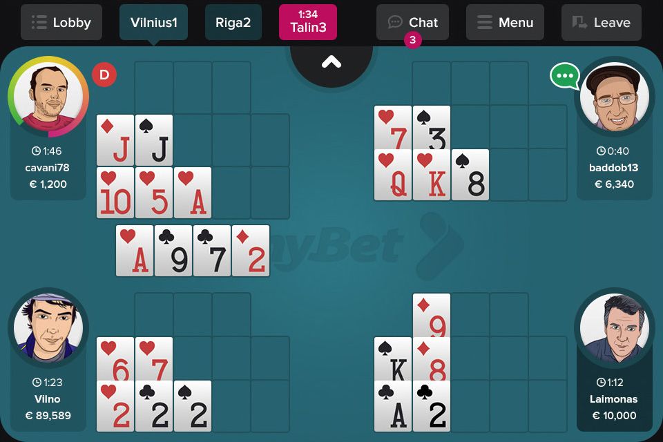 Кроме того, играть в китайский покер можно в руме TonyBet. Комната отличается тем, что здесь поддерживаются практически все виды азиатской дисциплины, столь широкого ассортимента нигде больше не найти. Игра доступна не только за кэш-столами, но и в формате Сит-энд-Гоу турниров. Площадка имеет отличный дизайн и качественное программное обеспечение.