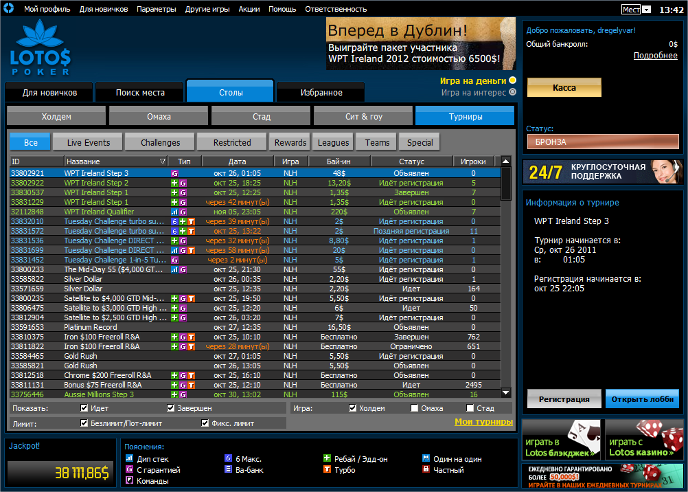 - Регулярные фрироллы. Лотос Покер готов предложить самые разнообразные бесплатные соревнования, как с чисто символическими, так и с крупными призовыми.
