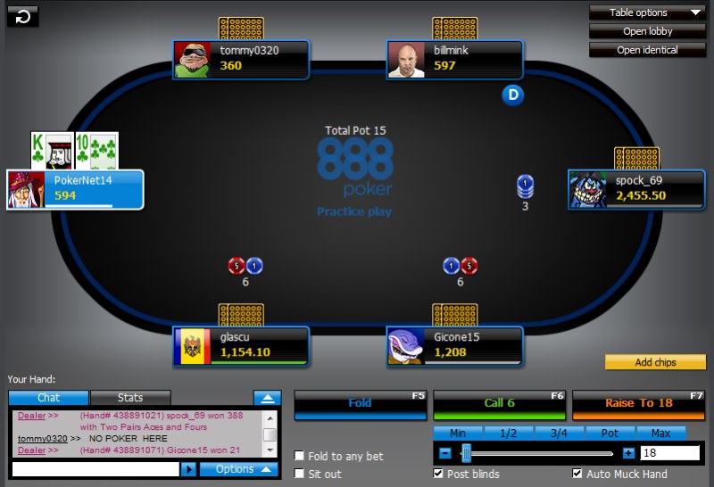 Начать играть онлайн в 888Poker