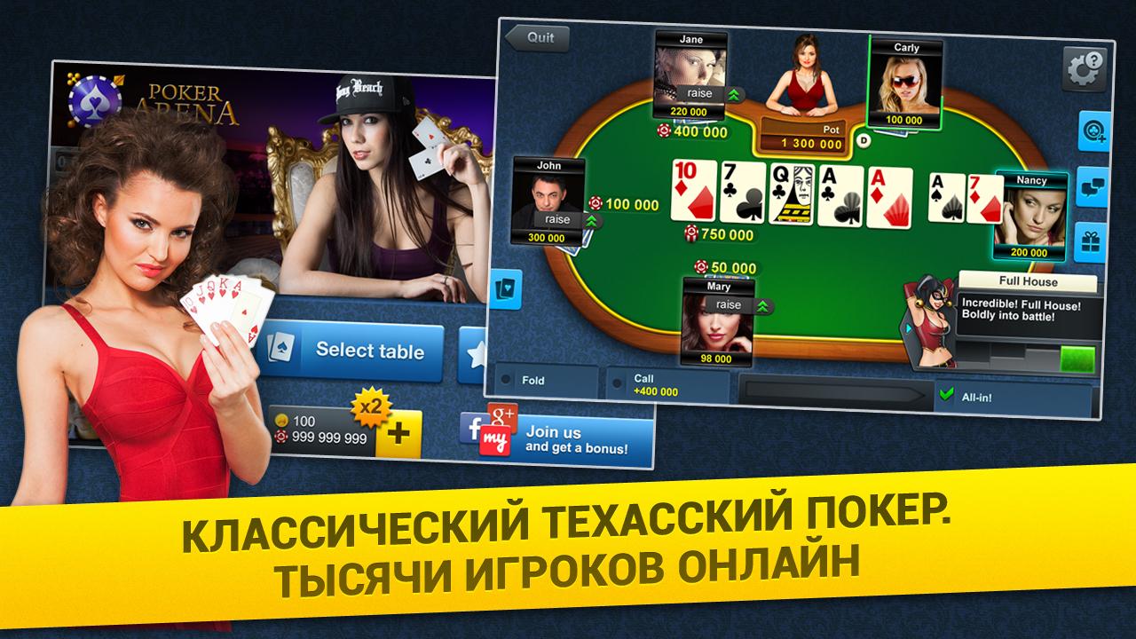 Если есть желание играть в покер онлайн бесплатно без регистрации с реальными людьми, то стоит обратить внимание на Покер Арена. Распространяется приложение совершенно бесплатно, доступно оно в мини-играх в системе Mail. ru. Чтобы начать играть в нем, необходимо иметь почту на этом сайте, либо осуществить авторизацию посредством одной из популярных социальных сетей: Вконтакте, Фейсбук, Одноклассники. За их использование для входа предусмотрены разнообразные бонусные предложения.