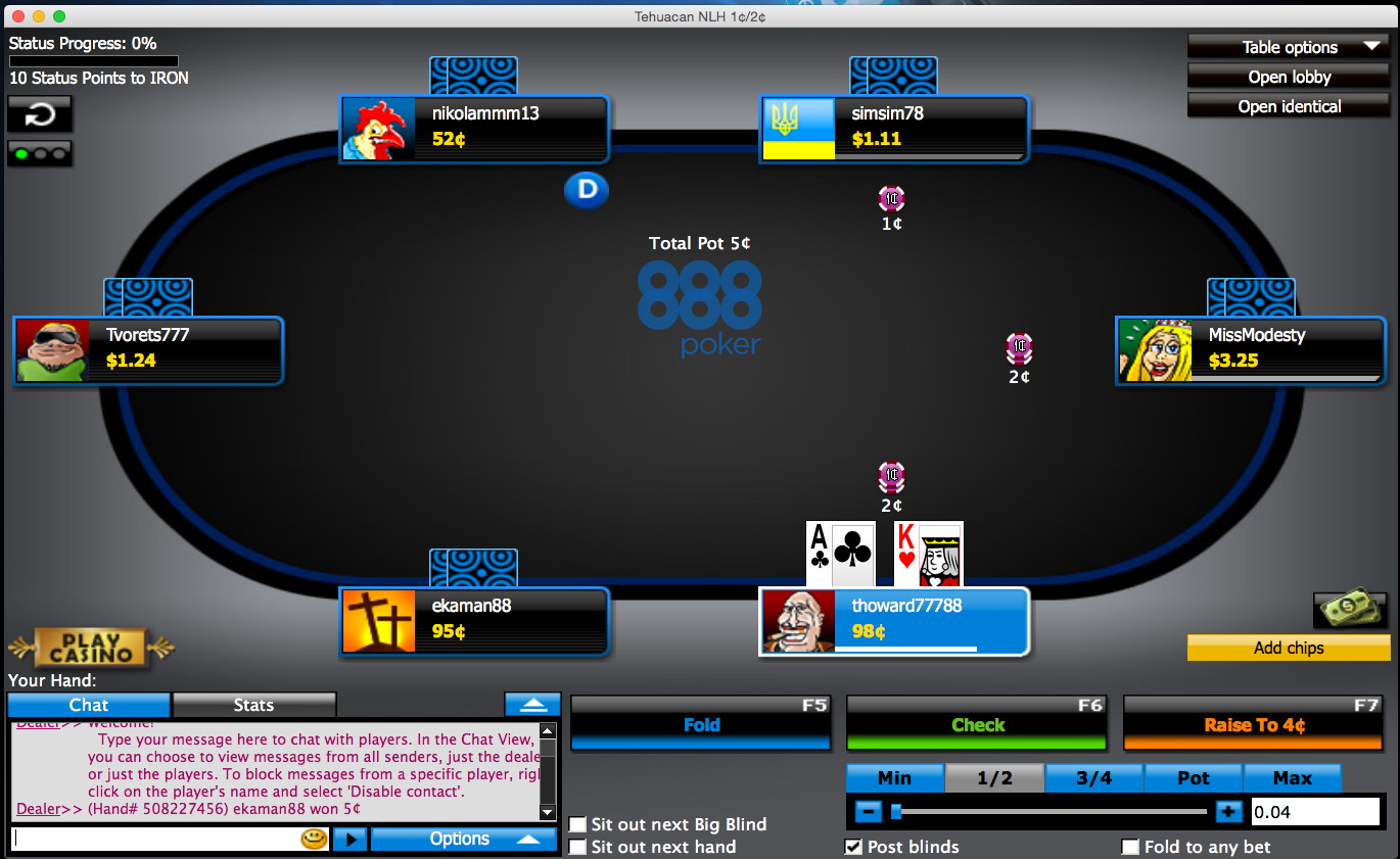 Самобытная и известная комната. Славится она невероятными бонусными предложениями и оригинальными акциями, которые проходят на регулярной основе. Здесь можно начать играть в покер-онлайн на реальные деньги с бонусом при регистрации без необходимости пополнения счета. Каждый новый клиент получает на счет 88 долларов без депозита, если выполнит два простых условия: создаст аккаунт и подтвердит электронную почту.