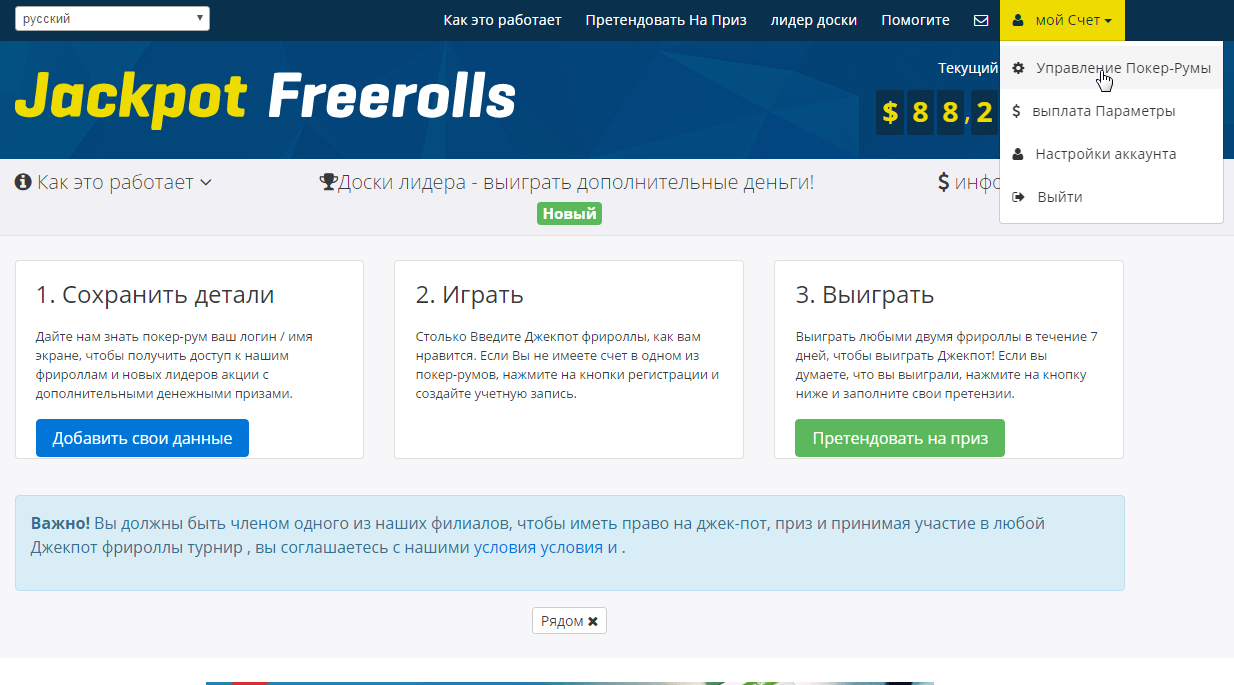 Чтобы получить пароль Jackpot Freerolls на 95 или 250k, нужно в первую очередь зарегистрироваться в этом сообществе на официальном сайте. Процедура создания аккаунта полностью бесплатна, ни за что платить не нужно. Все пароли выкладываются за час до начала любого турнира, поэтому нужно следить за обновлениями на ресурсе клуба.