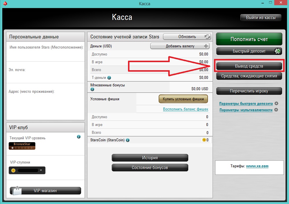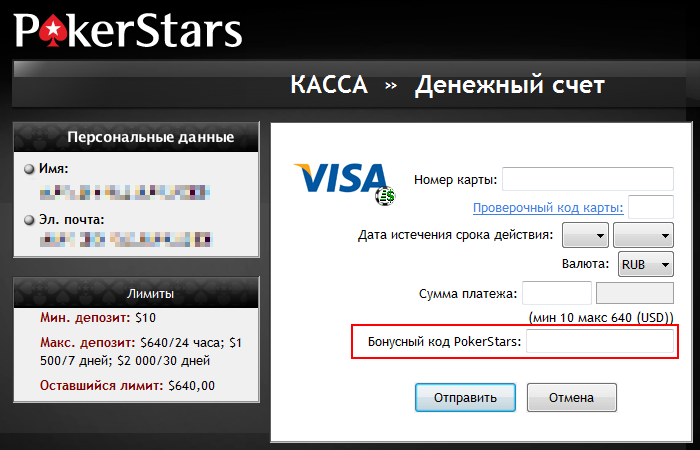 В Покер Старс пополнить счет тоже не составляет труда, эта функция реализована максимально просто и удобно. После регистрации, если все сведения указаны безошибочно, в правом нижнем углу лобби появится вкладка «касса», через которую и можно совершить депозит. Кроме того, в раздел получится перейти и в основном меню и практически на всех внутренних страницах. Для внесения денег на счет, игрок должен: