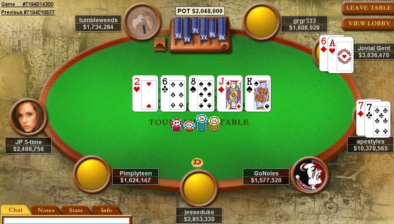- Безлимитный стол. Характерен для Холдема и для других направлений, в которых меньше фактор удачи, но больше стратегии со стороны игроков. Подходит больше для профессионалов. Участник на любом этапе круга торговли может поставить любую сумму денег на кон, главное, чтобы хватило фишек. Новичкам в первое время не рекомендуется играть в безлимитных столах.