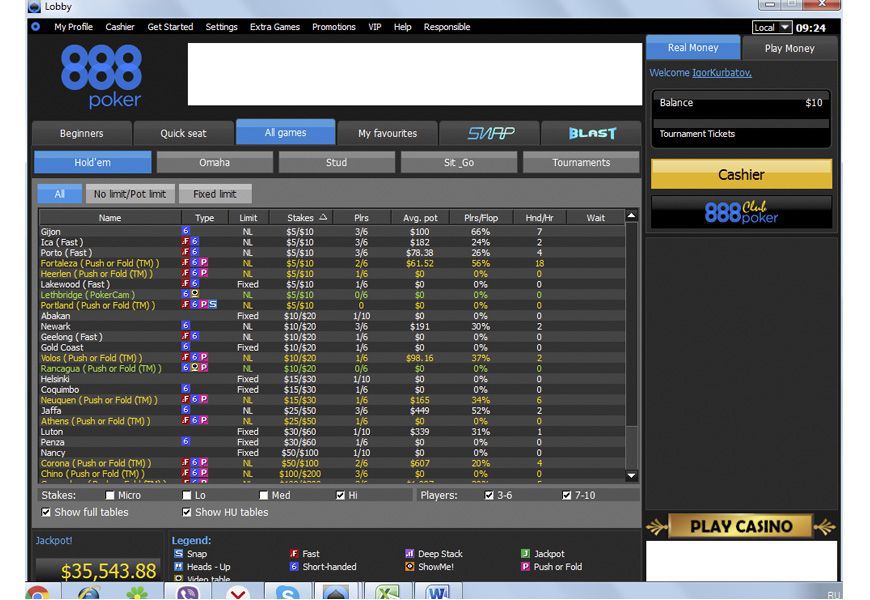 В мировом гиганте по онлайн-покеру 888Poker предпочитают начать играть огромное количество игроков, в том числе и в России. Отечественных любителей азарта привлекают выгодные бонусные предложения, огромное количество турниров, русскоязычный сайт и служба поддержки. Ну и конечно же, безупречная репутация «восьмерок». Создать 888Покер личный кабинет очень просто и полностью бесплатно.