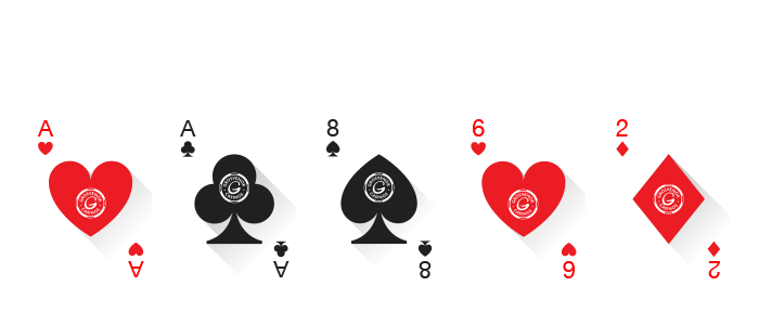 Две пары – игровая комбинация в покере, когда у покериста на руках по две карты одного достоинства и одна карта любого номинала и масти (два короля, две двойки и шесть треф).