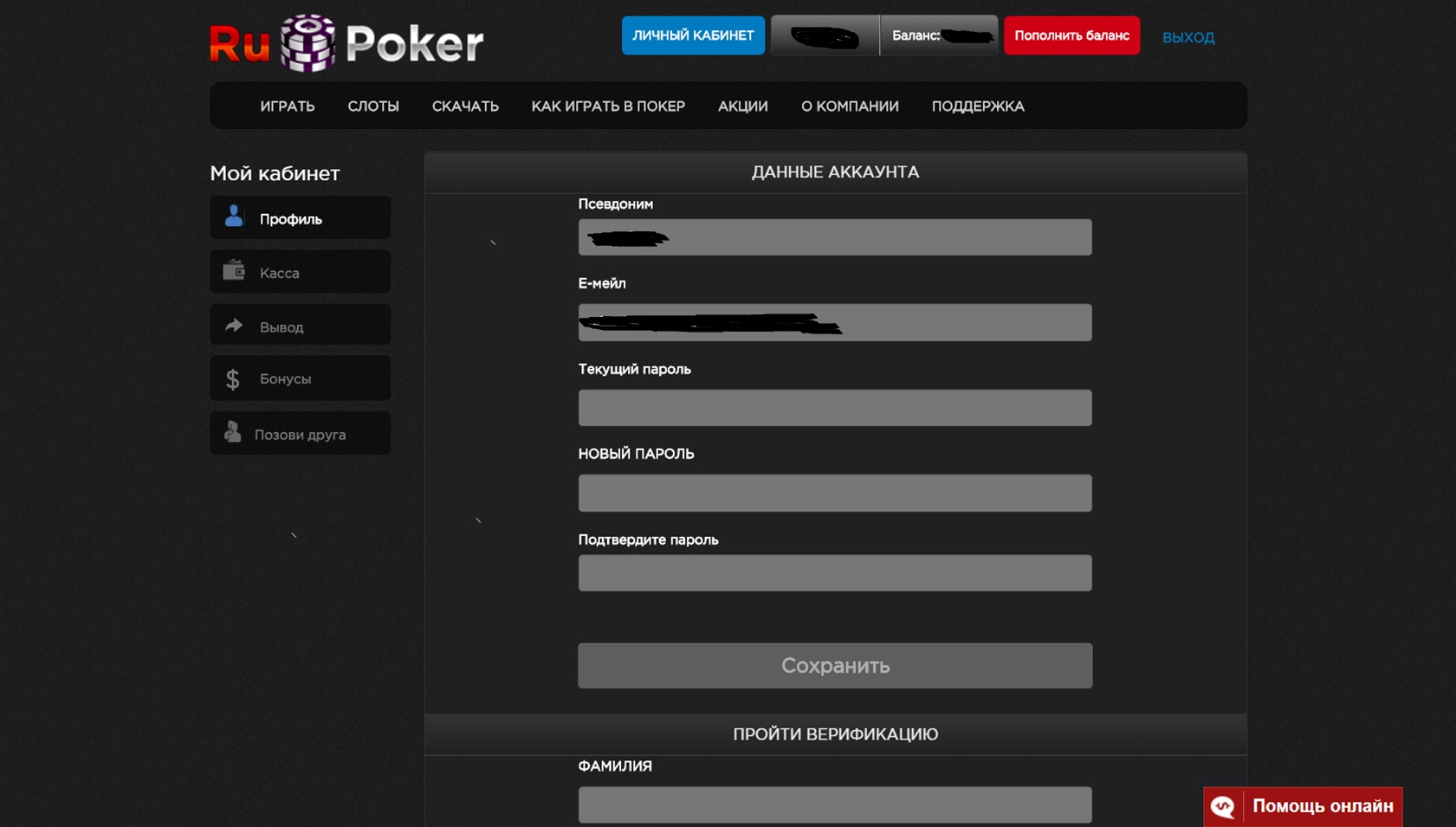 Меню и функциональность официального сайта заведения сделано на высоком уровне. Естественно, есть в RuPoker и личный кабинет. В нем доступны множество настроек, информация о пользователе и прочие полезные инструменты. Разберемся подробнее с личным кабинетом и разделом «Касса».