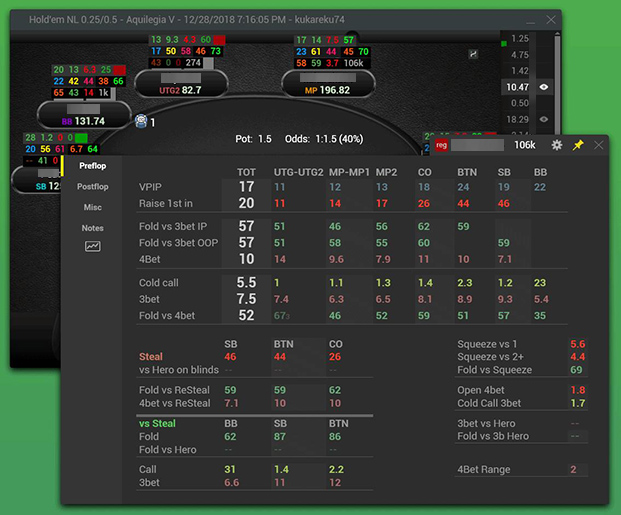 - Быстрый, удобный вывод показателей и статистики в доступном формате — не нужно запоминать действия оппонентов и диапазоны, выделять на это игровое время.