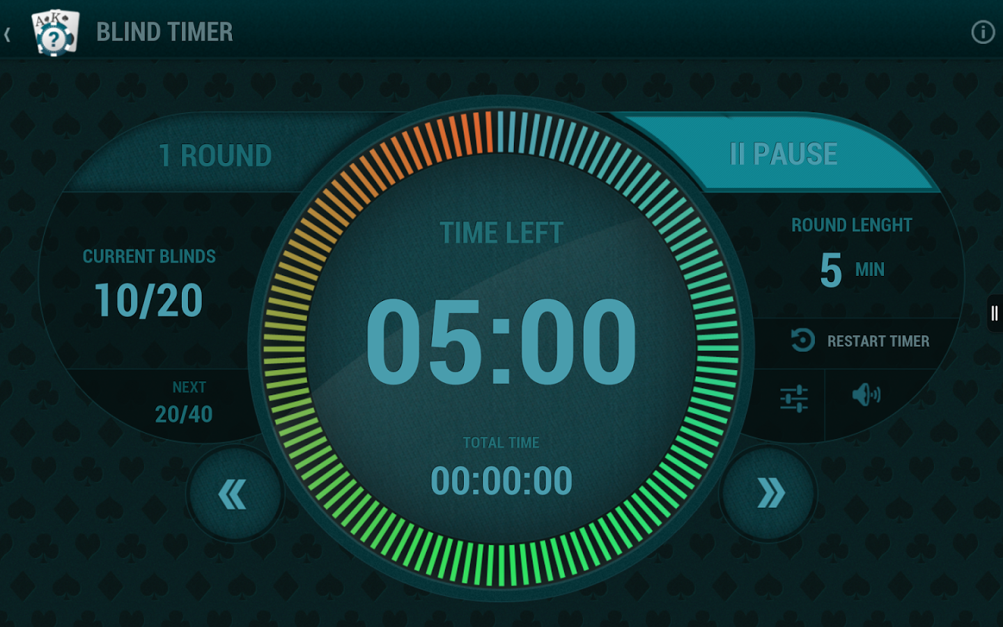 Функциональность подобных приложений сводится к элементарной функции – отсчет определенного промежутка времени, в котором необходимо повышать блайнды в турнире. Незаменимый софт в домашних соревнованиях, куда более удобней обыкновенных часов и секундомеров.