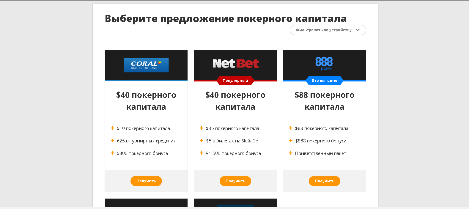 - Выгодные и уникальные предложения от крупных покер-румов, с которыми сотрудничает покер стратегия ком. Игроки могут получить бонус на первый депозит, пропуск на фрироллы, статусы ВИП, дополнительные очки лояльности, тикеты и многое другое. Для этого нужно всего лишь зарегистрироваться на сайте.