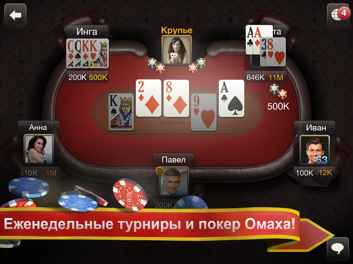 World Poker Club – лучшее место для бесплатного покера. Ни один социальный отечественный проект не может похвастаться таким качественным приложением и столь большим количеством зарегистрированных и активных пользователей.