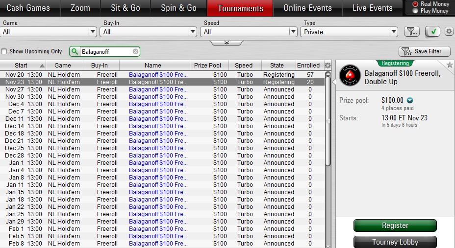 В PokerStars фрироллы проходят каждый день, их количество достигает нескольких тысяч. В официальном сайте регулярно публикуются пароли для участия в соревнованиях. Коды доступа также отправляются клиентам в рассылке по E-mail и СМС.