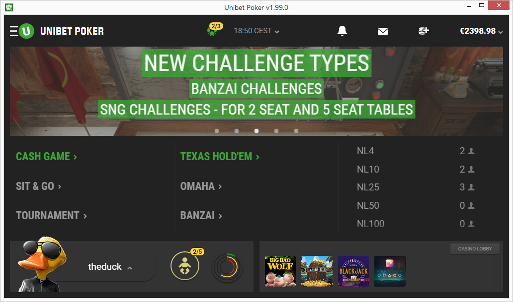 Рум Unibet Poker не остался в стороне, здесь предусмотрен бонус в 2 евро, он не такой большой, как в других заведениях, но для испытания сил и развлечения подойдет идеально. Сумма дается не реальными деньгами, а в виде билета на знаменитый турнир Unibet Open. Зачисляется он на счет моментально, сразу после прохождения регистрации.