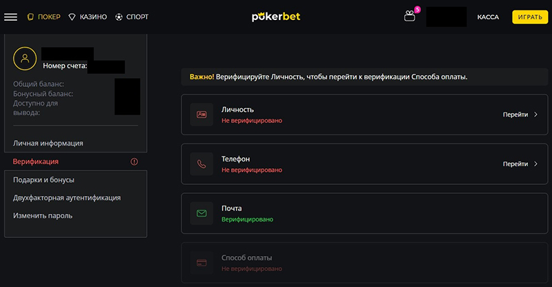 Подтвердить владение платежным методом можно, когда покерист успешно прошел верификацию личности. Для этого нужно: