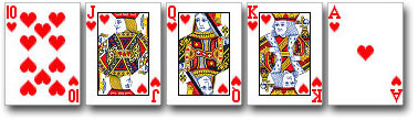 Наиболее выгодная и самая старшая комбинация в покере. Организуется из 5-и карт одной и той же масти, начинается 10 и заканчивается тузом (10, валет, дама, король, туз). По сути – это главный Стрит Флеш.