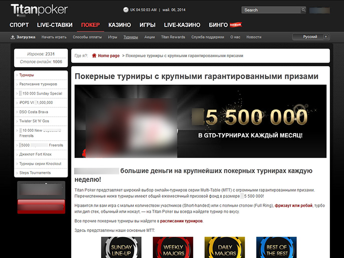 ТитанПокер – самый крупный представитель сети iPoker, работает на рынке не первый год, поэтому в его честности сомневаться не приходится.