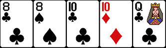 Улучшенный вариант Пары, состоит из двух пар карт одинаковым достоинством плюс один кикер. Комбинация встречается относительно часто, но выиграть с ней возможно только у неопытных покеристов, профи способны угадать ее появление. Небольшой пример: туз треф, туз червей, дама бубен, дама пики + 6 червей.