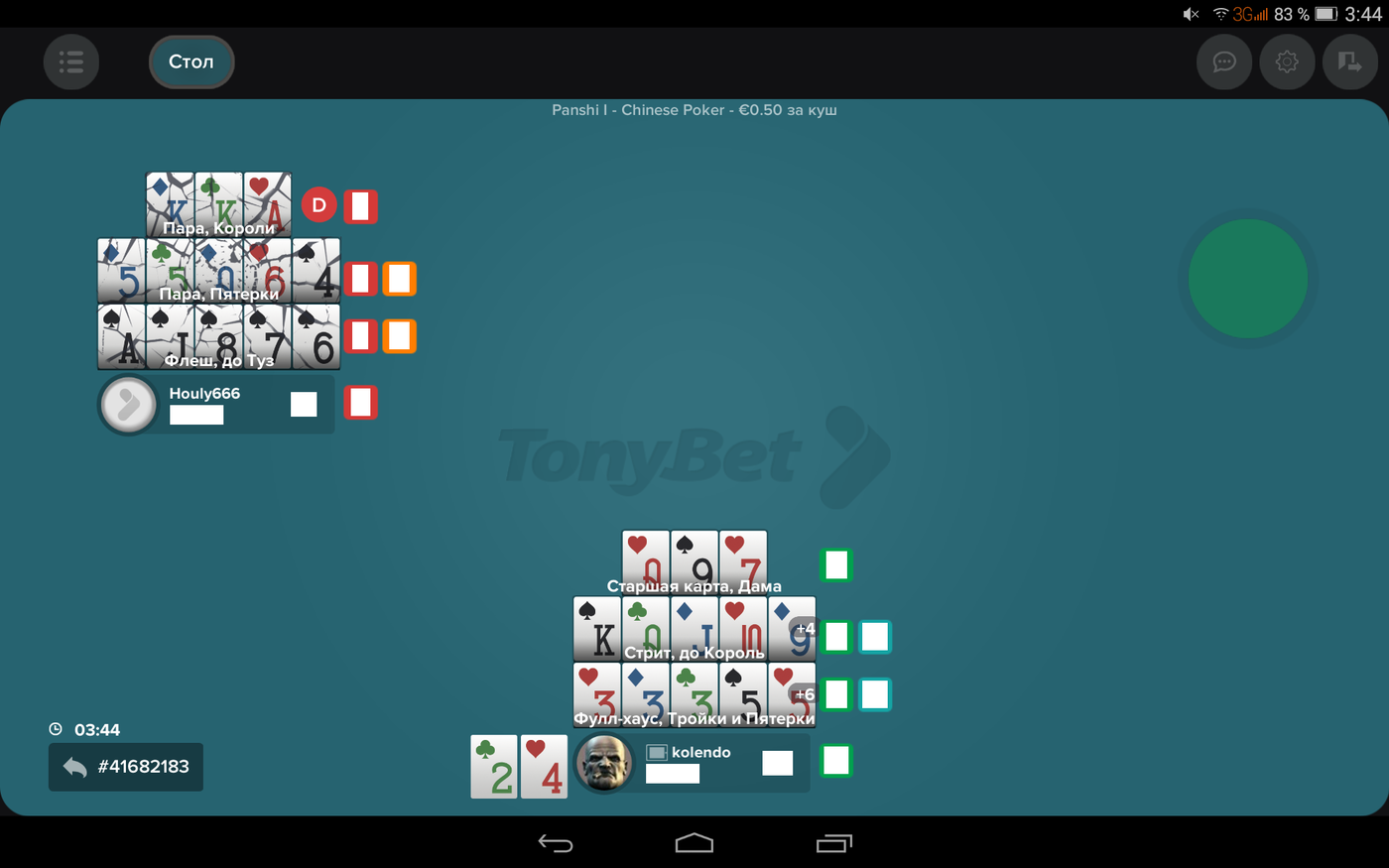 Соответственно столько же теряет проигравшая сторона. После сравнения карт всех соперников, объявляется, сколько в итоге получил каждый игрок.