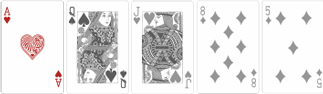 По покерным правилам к комбинации карт эта ситуация не относится. Старшая карта считается в том случае, если никто из играющих не составил никакой другой выигрышной комбинации. То есть все карты в руке выпали в произвольном порядке.