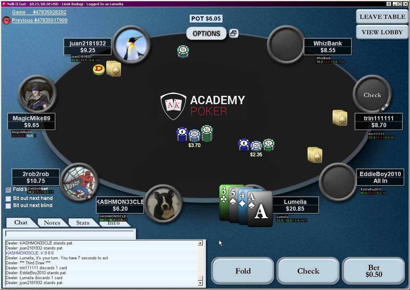 Далее идет второе дро, где круг торговли повторяется. Последний раунд назван также незамысловато – третий дро, здесь у игроков есть последний шанс поменять карты, либо выйти из игры.