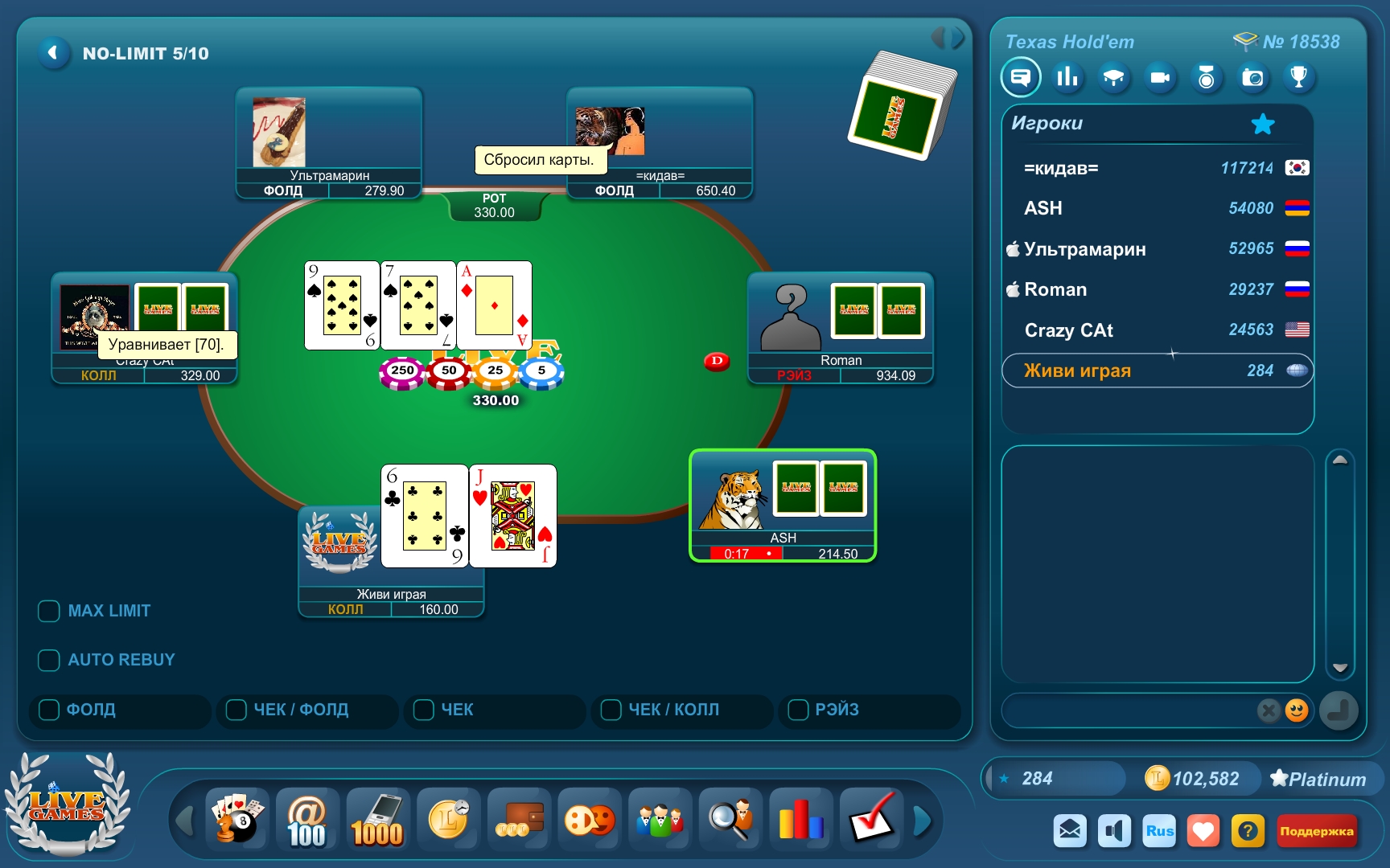 - Уравнять предыдущий бет. Термин называется колл. Игрок может поставить столько же, сколько и соперник.