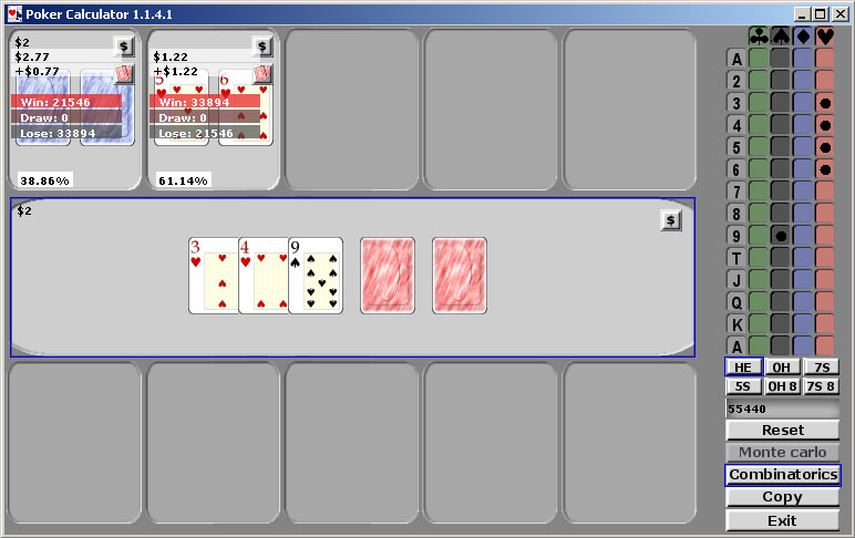 Работают калькуляторы просто: достаточно в специальном окошке указать свои карты, карты на борде и соперников. Система рассчитает все необходимые данные.