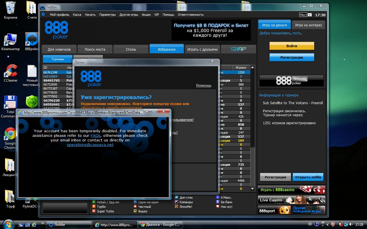- Открыть официальный сайт 888Покер или запустить приложение на компьютере. В первом случае будет необходимо найти актуальное «зеркало», поэтому удобнее работать в программе.