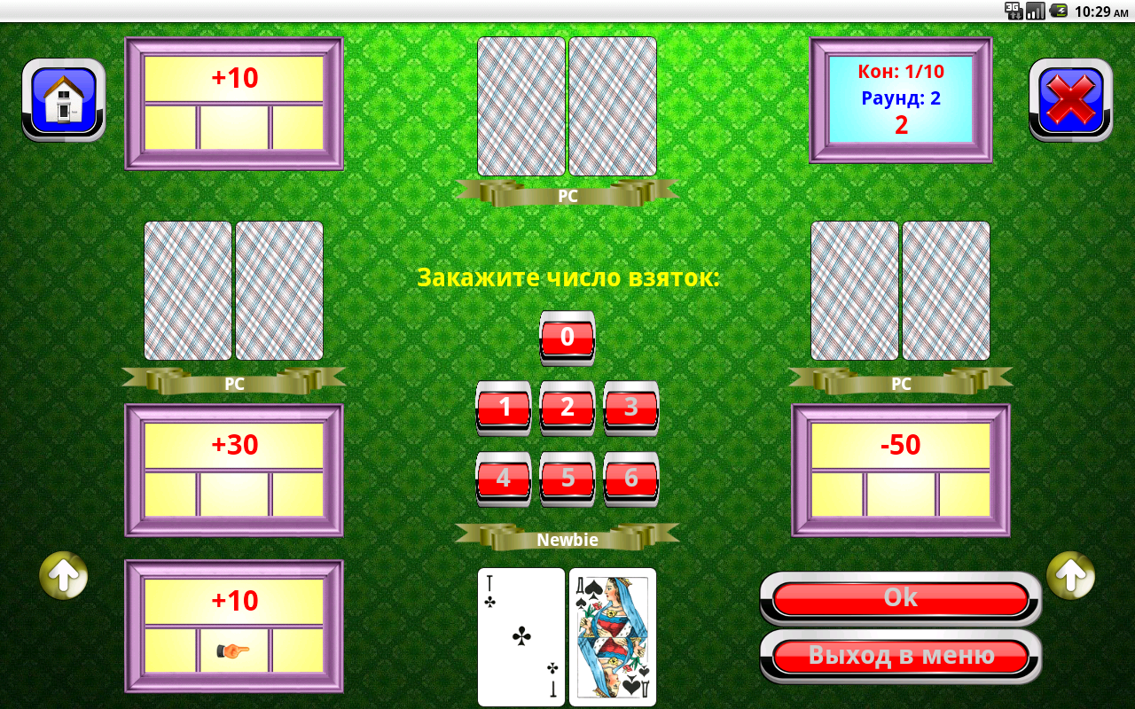 - Если случился перебор, то за одну взятку положено всего лишь одно очко. Не самый худший вариант, но и не хороший, много на этом не заработаешь.