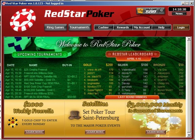 В РедСтарПокер доступны такие разновидности как: Техасский Холдем, Омаха, 5-карточный Стад, Разз, 7-карточный Стад. Диапазон лимитов довольно широк, что говорит об ориентированности и на новичков, и на профессионалов.