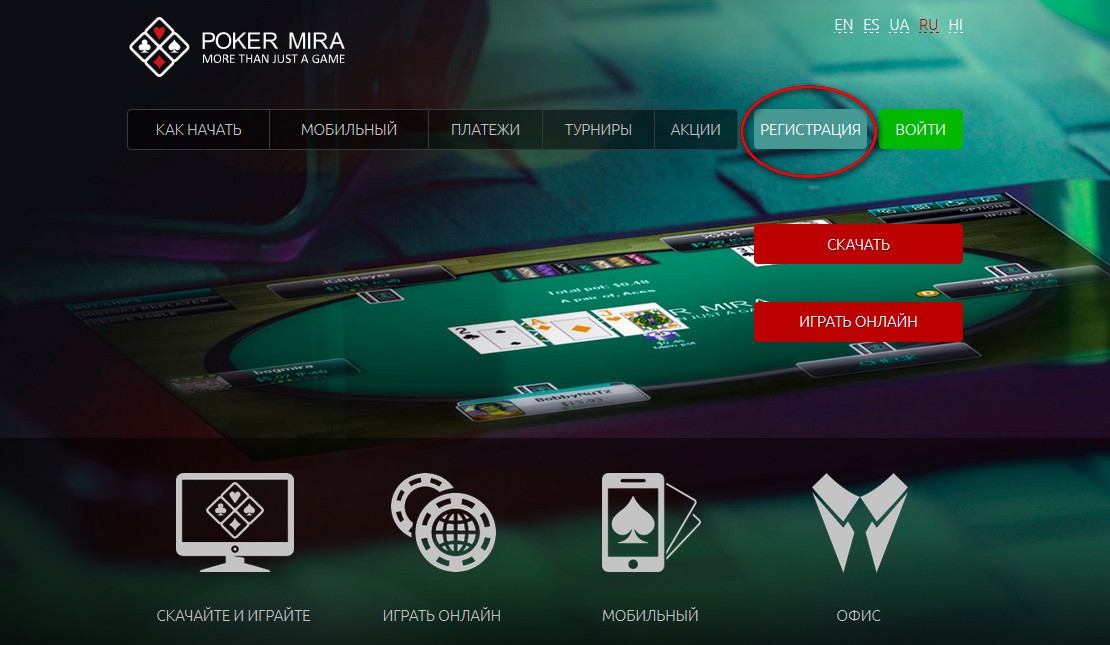 Рассматривая покер румы России, обязательно стоит обратить внимание на PokerMira. Этот рум начал работать в 2010 году, ни одной сети не относится, поэтому рассчитывать на широкую аудиторию здесь не стоит. Но достоинство заведения в другом – довольно «слабое» поле покеристов. Значит, эта площадка – отличный старт для новичков, которые могут не бояться профессионалов.