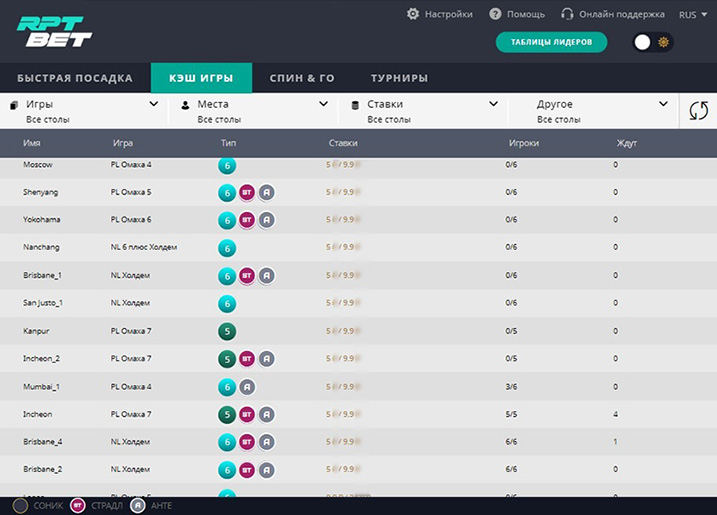 Площадка RPTBET ориентирована на клиентов из разных стран, в том числе РФ. Пользователи могут беспрепятственно пройти регистрацию, пополнить счет, сесть за стол и начать игру. Не возникает сложностей и с выводом денег. Средства можно снять с помощью удобных методов.