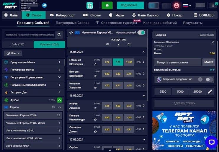 Что предлагает официальный сайт RPTBET