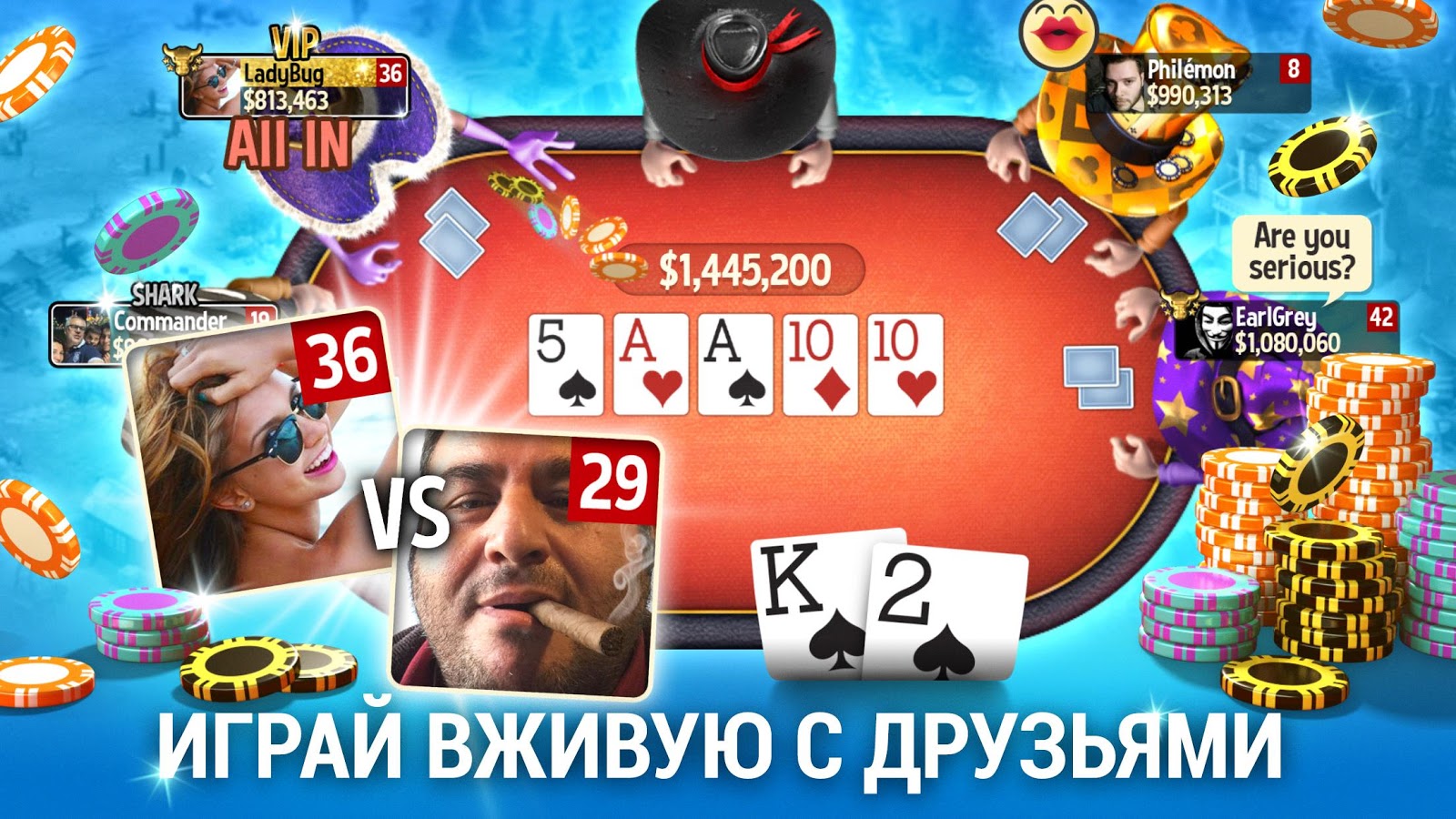 Весь игровой процесс идет только на виртуальные фишки, в начале игрок получает определенное их количество. Запас пополняется каждые четыре часа, но при условии, что пользователь постоянно заходит в приложение. Валюту можно приобрести и за настоящие деньги, если есть желание играть на более дорогих турнирах.