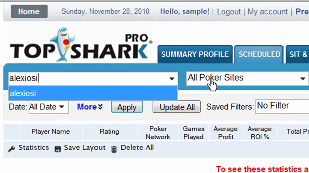 Top Shark дает множество статистических сведений об игроке, особо важными можно назвать следующие: