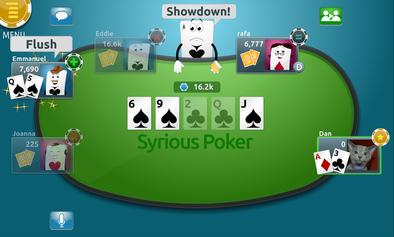 - Начинается шоудаун в покере с участника, который последним сделал ставку, либо повышал на ривере – последней улицы розыгрыша. Если все предпочли на этом этапе пропустить, то первый ход совершает покерист, находящийся слева от дилера.