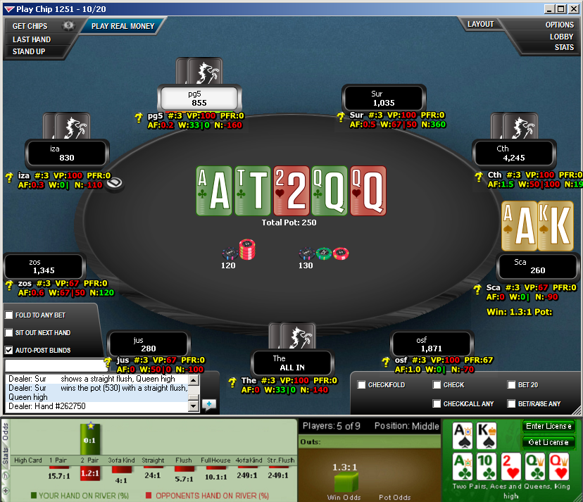 - Win Odds. Шансы на победу. Это основной показатель для игрока, он отображает, сколько процентов вероятности одержать верх, учитывая собранную комбинацию, размер банка, количество соперников и прочие данные. Информация выдается в виде графика.