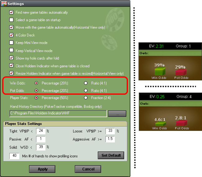 Настройки Holdem Indicator