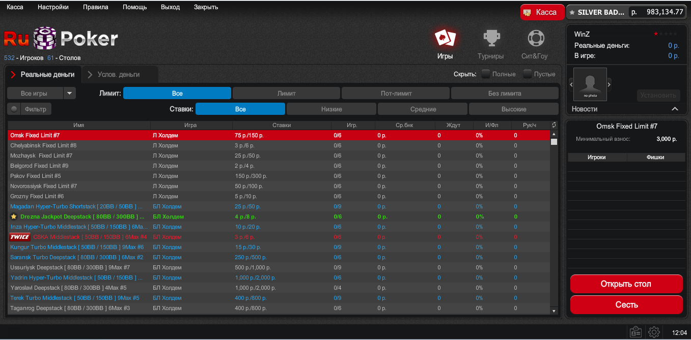 Приложение РуПокер для компьютера – отличный вариант играть в покер на деньги. Оно отличается стабильностью и качеством. Его можно смело рекомендовать новичкам, так как регуляров в этой комнате еще очень мало.