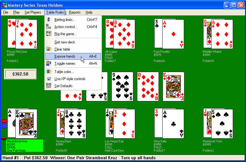 Еще один довод, чтобы скачать покер без интернета Mastery Series Texas Holdem – возможность настраивать стиль игры противников, их уровень, лимиты, рейк и прочее. Теперь пользователь может со всех сторон оценить свое умение и мастерство.