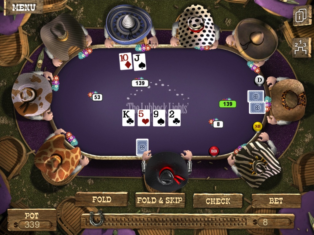 На первое место, безусловно, нужно ставить именно это приложение. В русском варианте название игры звучит как Губернатор покера, или чуть реже Король покера. Большинство пользователей, решивших скачать покер на Андроид оффлайн, обращают внимание именно на Governor of Poker, так как оно на слуху практически у всех любителей азарта. Даже у тех, кто в принципе не любит подобные бесплатные проекты.