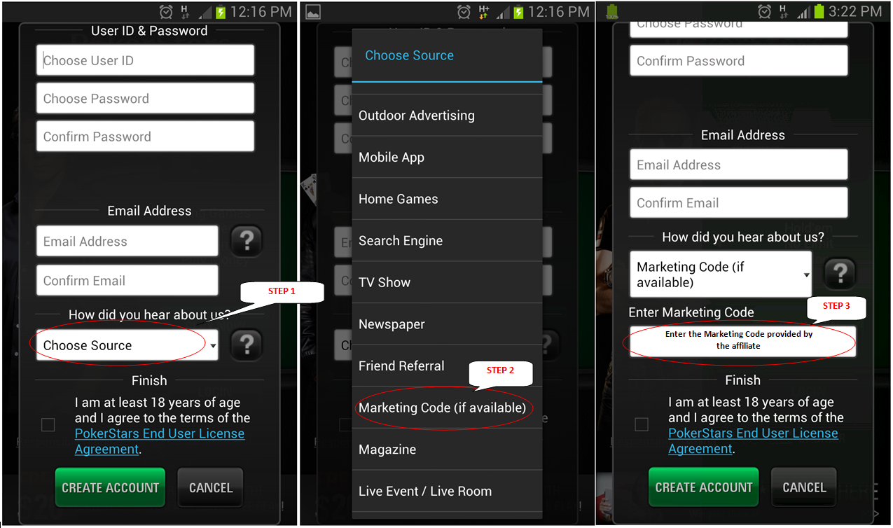 - В конце выбрать источник, из которого клиент узнал о Pokerstars.